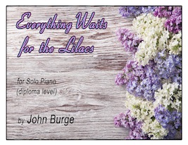 Everything Waits for the Lilacs, for piano solo [JBComps-002], is a brief, evocative work that captures the anticipation of spring. The title is borrowed from the Margaret Avison poem, “Thaws,” which is found in her collection of poetry entitled, Sunblue. Taking approximately 6 minutes to play the work is listed on the Royal Conservatory of Music's Associate Diploma Repertoire List E. The work is gratefully dedicated to Dorothy Hare, a piano teacher in Calgary who was influential in the development of the composer’s musicianship and training. The work was given its premiere performances by Janina Fialkowska during her fall tour of British Columbia in 1997. Purchase options and prices: Mailed Score - $13 Canadian plus postage; Music Book PDF License - $10 Canadian; Studio PDF License - $32 Canadian.