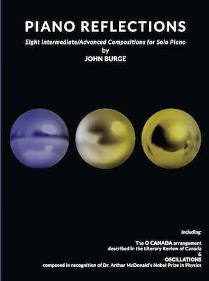 Piano Reflections, for solo piano [JBComps-004], is in some ways a more advanced follow-up to the Parking an Octatonic Truck collection in that both books include some compositions that were written in the late 1990’s for use as quick-study pieces. While assembling the set, Burge was asked to write a composition for one of his colleagues at Queen’s University in honour of the university’s first Nobel Prize recipient in 2015. The resultant tribute to Dr. Arthur McDonald titled, “Oscillations,” became this collection’s most significant work and led to a VIDEO of Burge performing the work. Other pieces are clearly influenced by some of Burge's favourite keyboard composers such as J.S. Bach and Kabelevsky. Equally appealling though, are the truly original works such as "One-note Groove" with its driving minimalistic energy or the shifting impressionistic-like sonorities of "Pastels." Inspired by a former student of John Burge's reference to his solo piano arrangement/improvisation of “O Canada” in a 2015 Literary Review of Canada book critique, it seemed timely to include this setting of Canada's national anthem just prior to Canada's 150th anniversary of Confederation in 2017. Purchase options and prices: Mailed Score - $19 Canadian plus postage; Music Book PDF License - $15 Canadian; Studio PDF License - $47 Canadian.