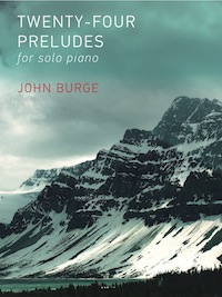 Twenty-four Preludes, for solo piano [JBComps-003], follows the same design of Chopin's Opus 28 set by having one prelude in each major and minor key. The complete set takes about 60 minutes to perform but most of the Burge's preludes can be performed successfully on their own or in sets of two or more pieces. Fourteen of the preludes have descriptive subtitles such as "Bells in Winter," "Linear Reverberations," "One-note Ostinato," "The Hummingbird," and "Spring Thaw." It is also worth noting that eight of the preludes use extended instrumental techniques such as strumming strings inside the piano. These techniques are very simple to execute and do not require any advance preparation of the piano but in most cases can only be realized successfully on a grand piano with the music stand removed. As a guiding principle, Burge tried to embrace each Prelude’s tonic key in an audibly recognizable fashion so that at times the music is emphatically tonal, even in the Preludes that involve non-traditional performance practices. Containing 80 pages of music, this 9X12 inch edition is beautifully designed with a lay-flat coil binding that is protected by a fold-over cover. Purchase options and prices: Mailed Score - $39 Canadian plus postage; Music Book PDF License - $29 Canadian; Studio PDF License - $78 Canadian.