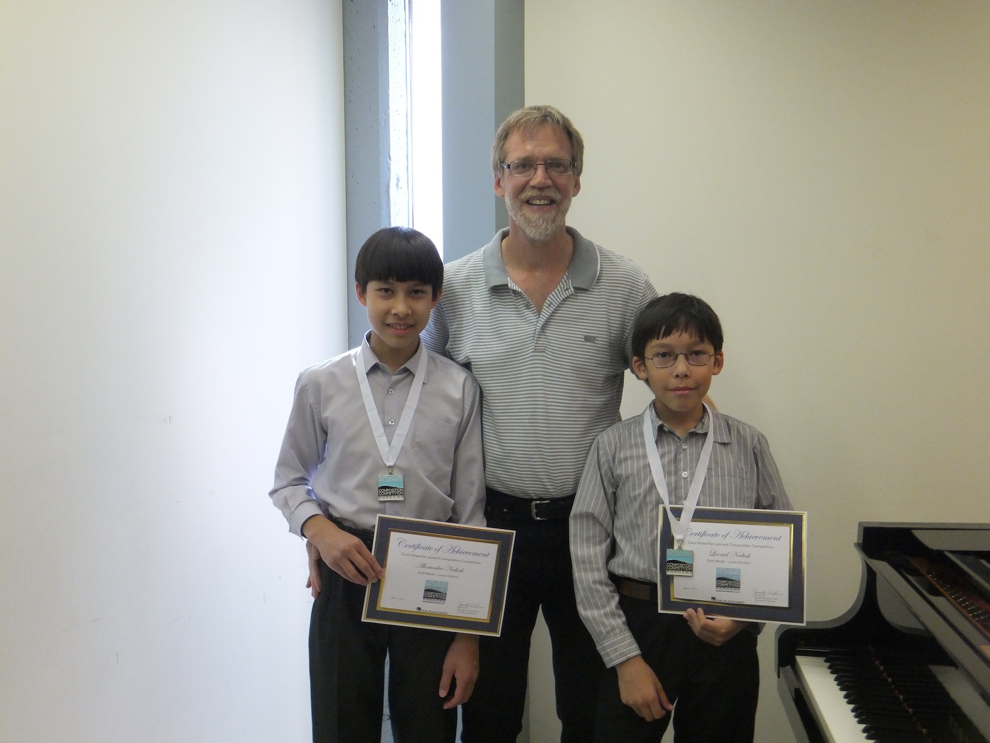 Alex Nediak (age 12) and Leo Nediak (age 10) displaying their first prize winning certificates and medals in the Carol Klose-Hal Leonard Composition Competition for the piano duet entitled, Elegy, that they composed, performed and recorded (on YouTube) in 2013.